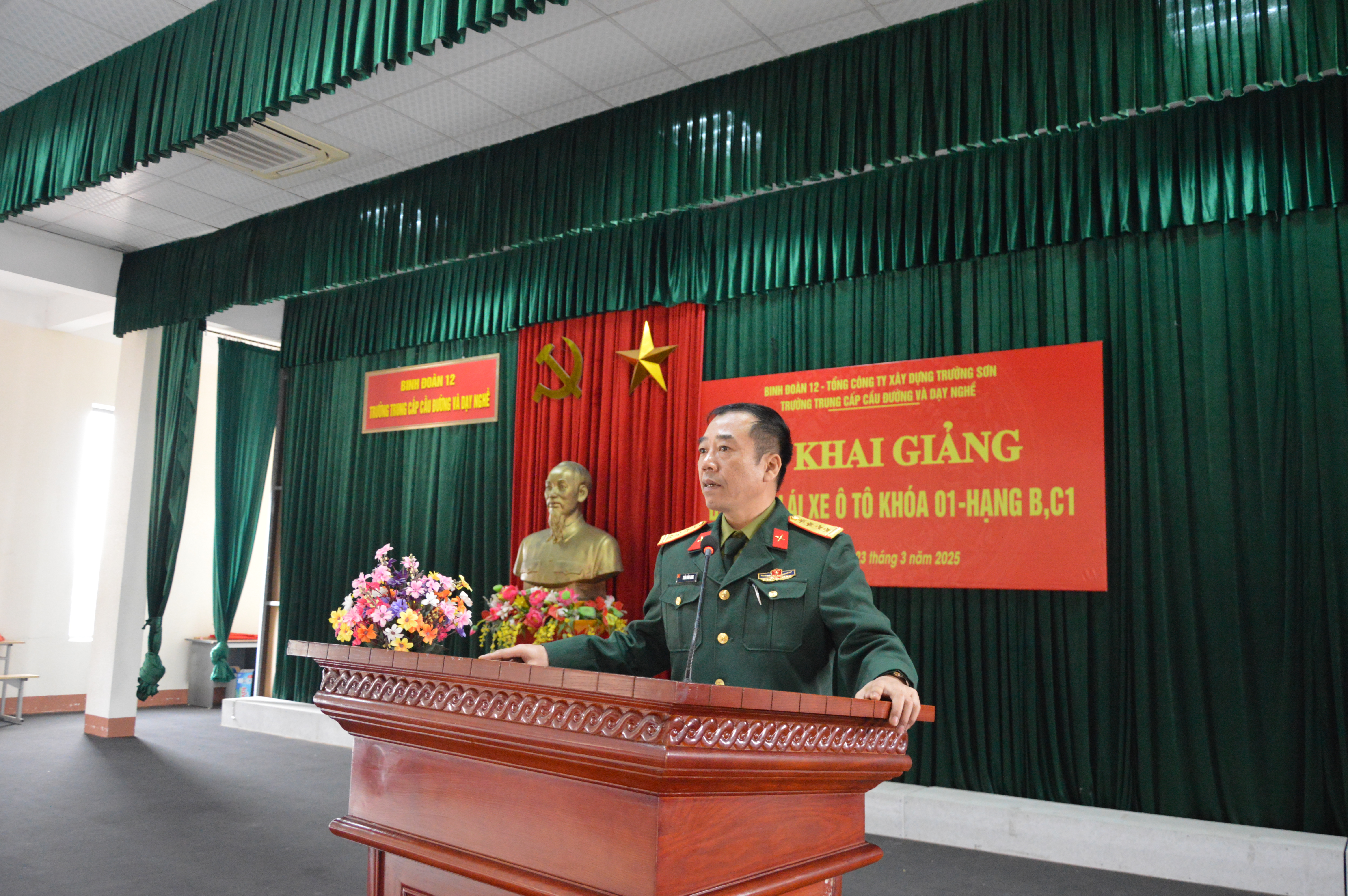 Ngày 23 tháng 3 năm 2025, tại Hội trường lớn của Trung tâm đào tạo và sát hạch lái xe Trường Sơn, trực thuộc Trường Trung cấp Cầu đường và Dạy nghề – Binh đoàn 12, đã diễn ra lễ khai giảng khóa 1 đào tạo lái xe ô tô hạng B, C1 trong không khí trang trọng, ấm áp và đầy quyết tâm.